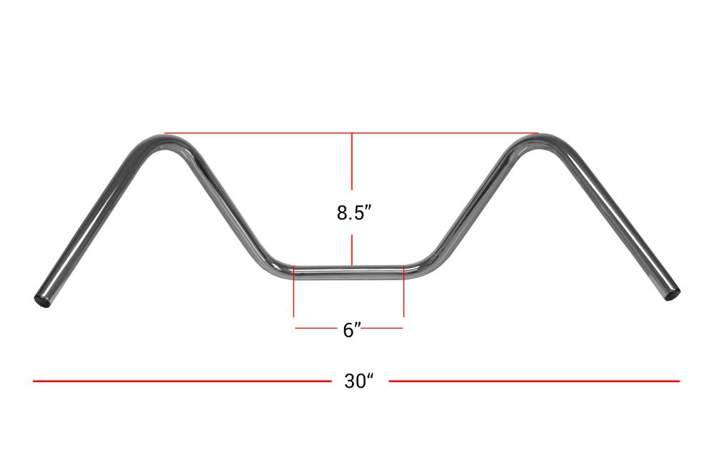 8" rise pull back. 6.5" centre width. 30" overall length. 7/8" chrome.